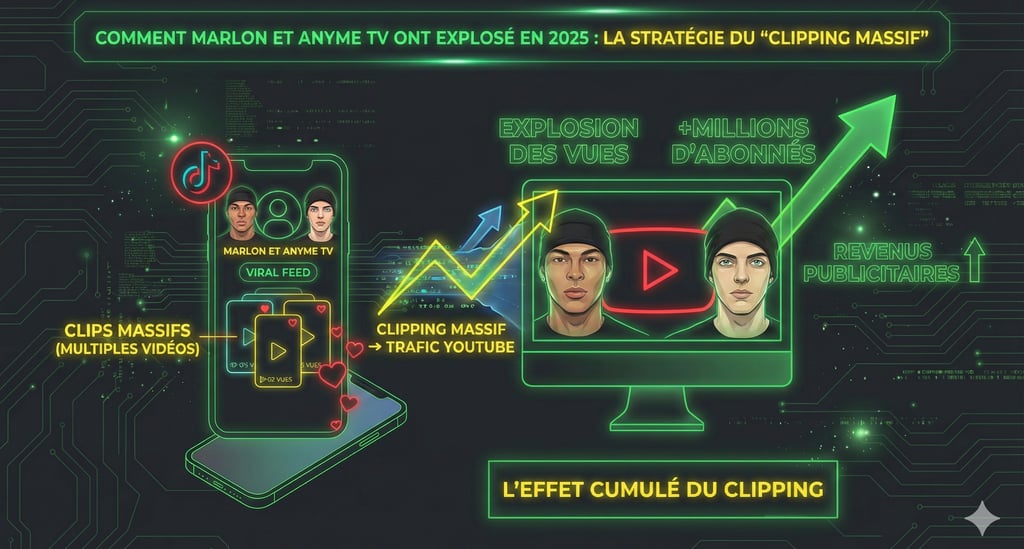 Comment Marlon et Anyme TV ont explosé en 2025 ? Découvrez la stratégie du "Clipping Massif" pour transformer vos vues TikTok en abonnés YouTube et Twitch.